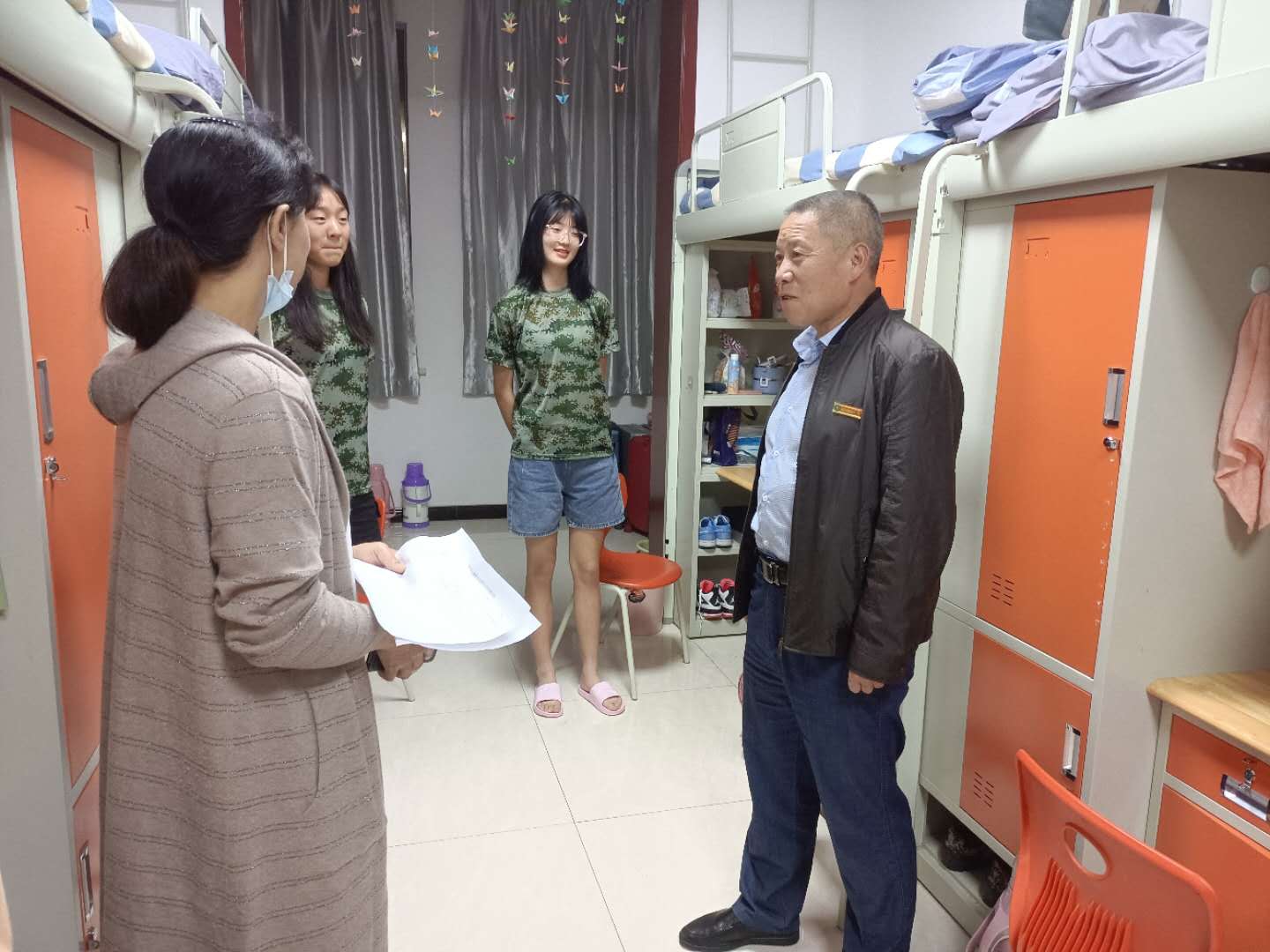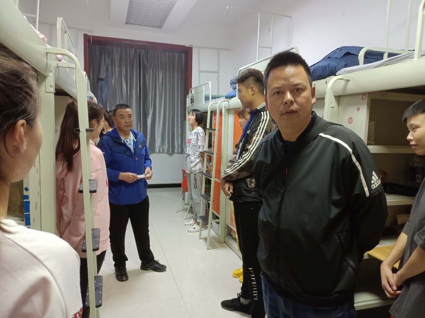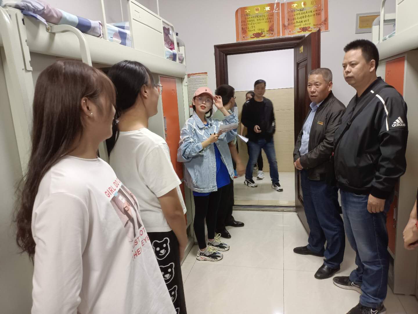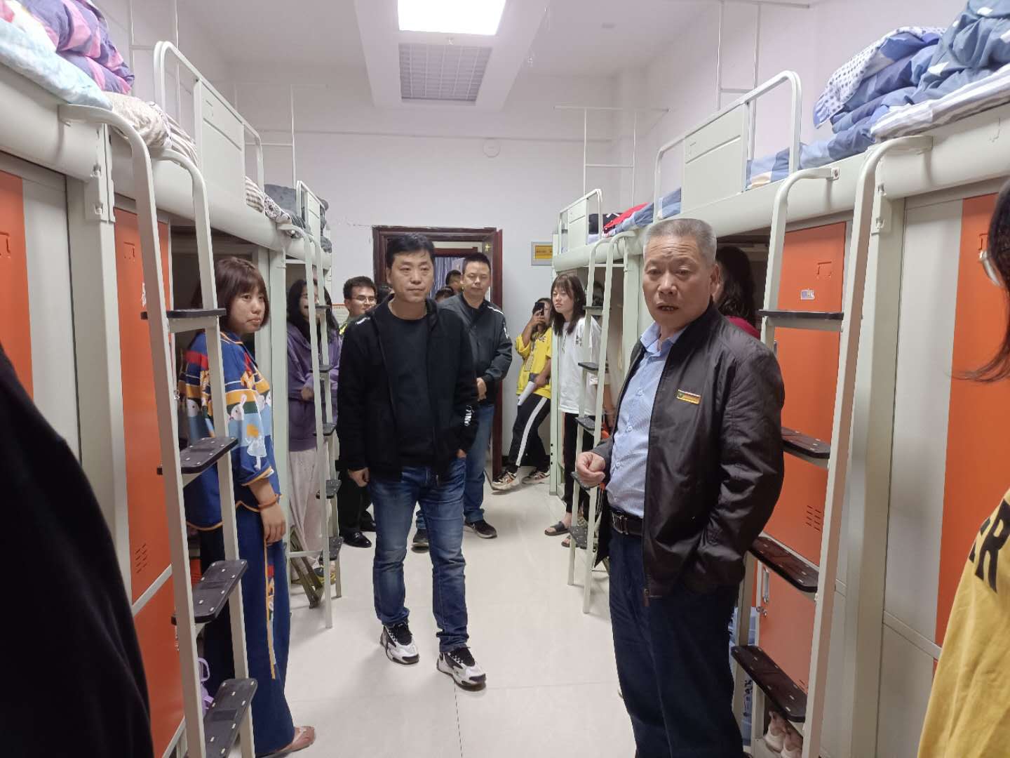 走访组一行先后前往华英弘毅公寓、博闻公寓走访2020级新生,认真查看宿舍设施设备与环境条件,关切问候新生初来大学的生活感受,叮嘱新生尽快熟悉校园环境、适应老员工活,鼓励新生们积极参加公司各类活动、认真规划老员工活,希望新生以最饱满的精神状态迎接即将到来的军训和老员工活。