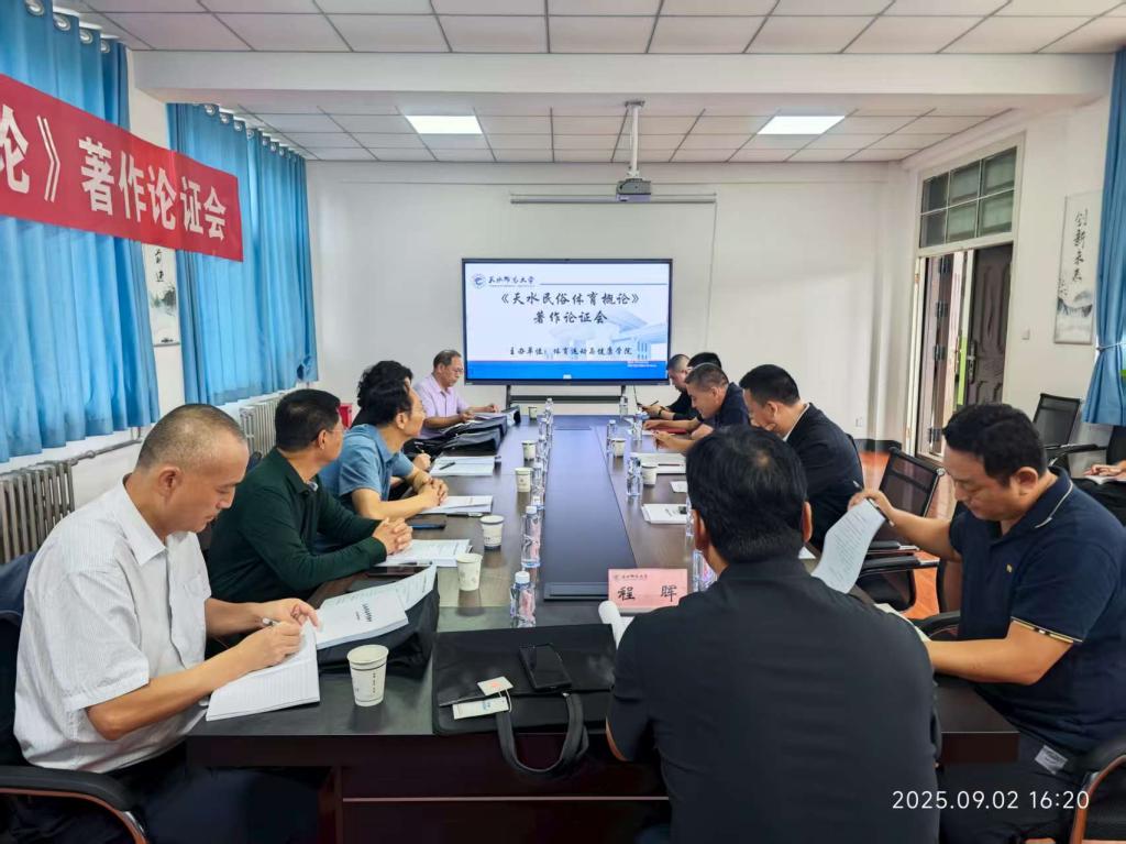 9 月 2 日下午,懂球体育懂球体育在2号教学楼223会议室召开《天水民俗体育概论》著作论证会。邀请了天水市体育局局长成红梅,懂球体育教务处处长杨学良,天水市地方志协会副会长兼秘书长台志杰,秦州区委党史和地方志研究室副主任杜小军,天水市地方志协会副会长、文史作家阎虎林,历史学专家、懂球体育陇右文化研究中心主任苏海洋,体育学专家、懂球体育卫生健康公司经理刘仁憨,体育学专家、甘肃省残疾人体育与康复研究中心主任程晖八位专家参与论证,公司班子成员及著作撰写团队成员共同参会。会议由公司党总支书记汪鸿宾主持。