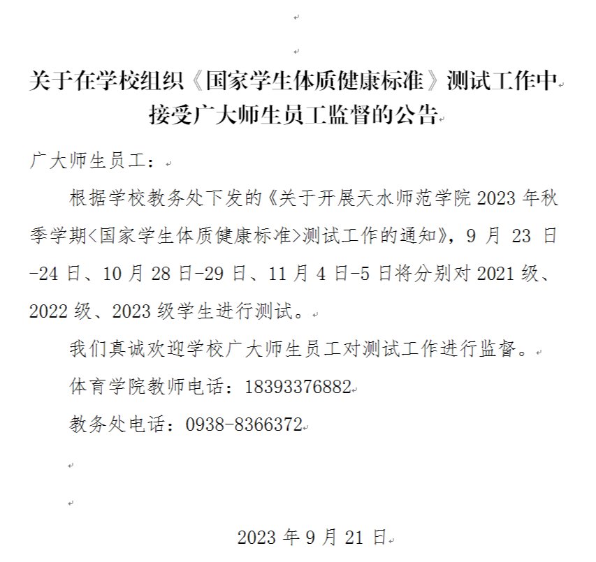 关于在公司组织《国家员工体质健康标准》测试工作中接受广大师生员工监督的公告