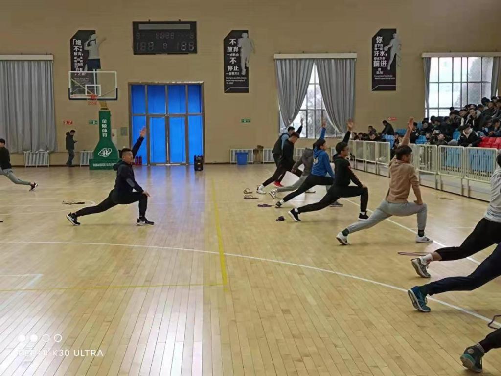 懂球体育主动邀请了天水市伏羲小学王新民老师、逸夫中学张留柱老师和第三中学钟典模老师来校授课。三位老师在公司体育馆内为员工分别上了体育示范课程,并分别就中小学体育课程的特点、难点进行了系统的讲解、示范。